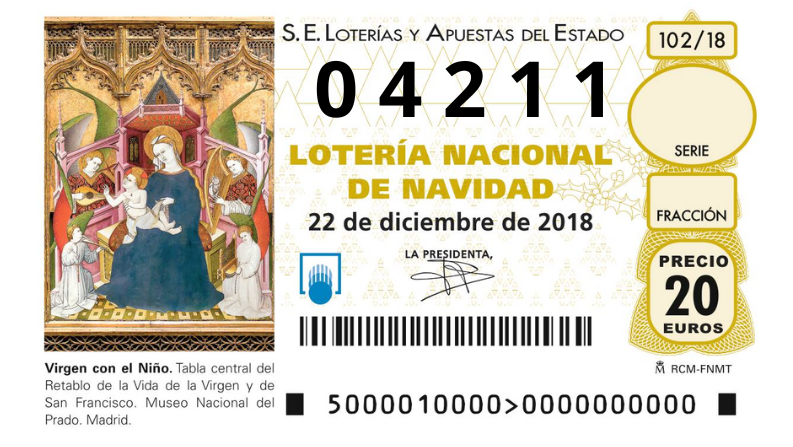Un único premio ganador, con el número del gordo de la Navidad.