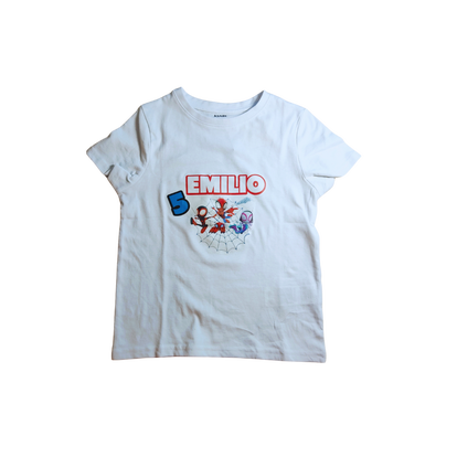 Las camisetas son 100% algodón de color blanco, así que, solo tienes que elegir la temática que quieras y la haremos con mucho mimo y cariño adaptándonos a la talla y al cuerpo del niño/a.